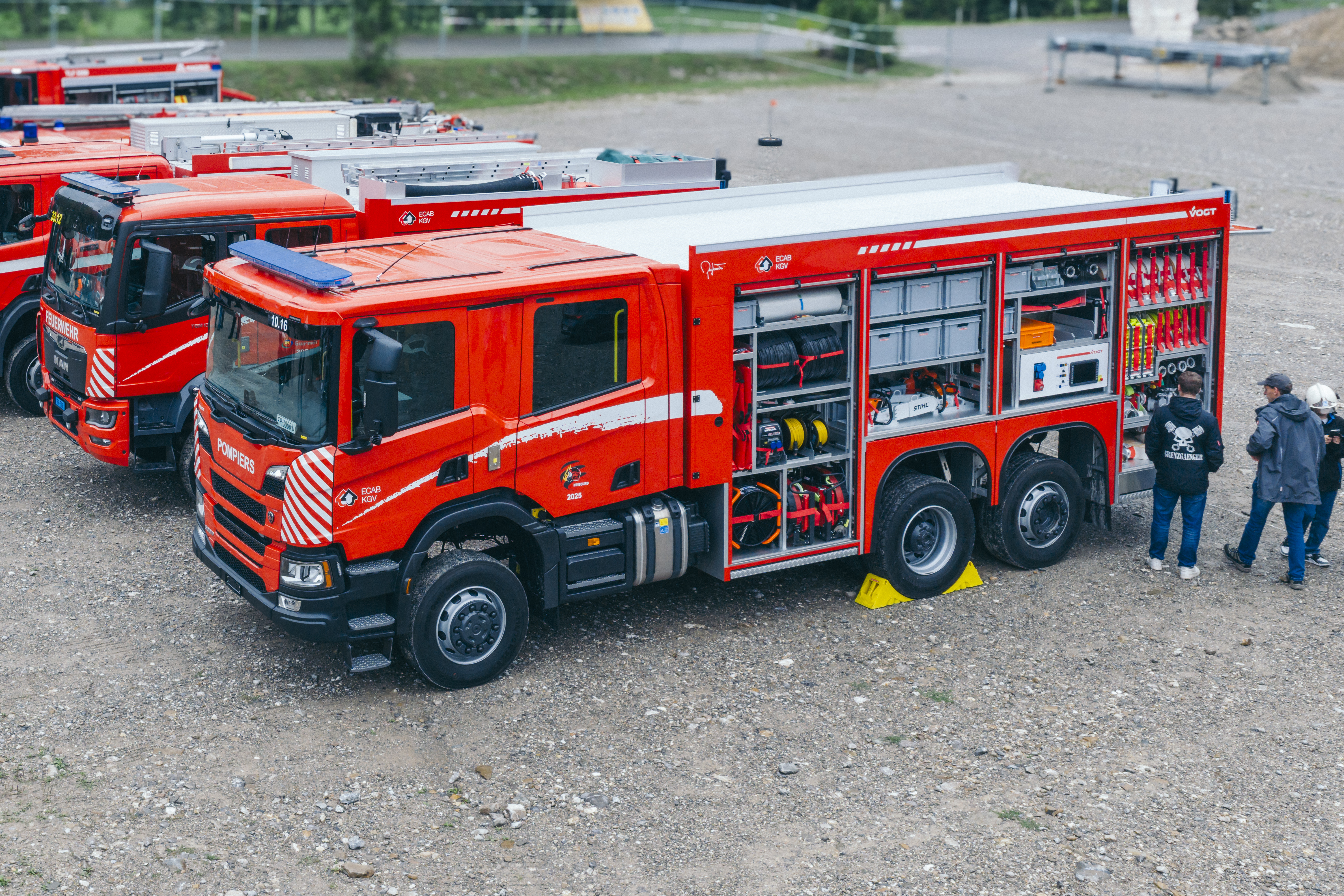 L’ECAB prépare en effet l’arrivée des nouveaux Scania P500 6×4 de 26 tonnes. La livraison de ces mastodontes d’une capacité de 6000 litres d’eau est prévue de manière échelonnée entre l’automne 2025 et le printemps 2026. Innovation majeure: l’écran des commandes n’est plus à l’arrière mais sur le côté, garantissant la sécurité des machinistes lors d’interventions autoroutières.